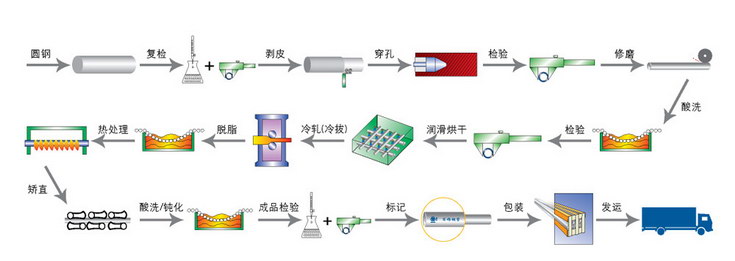不銹鋼和鎳合金無縫管生產工藝流程圖