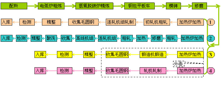 不銹鋼和鎳合金管坯圓鋼生產工藝流程圖